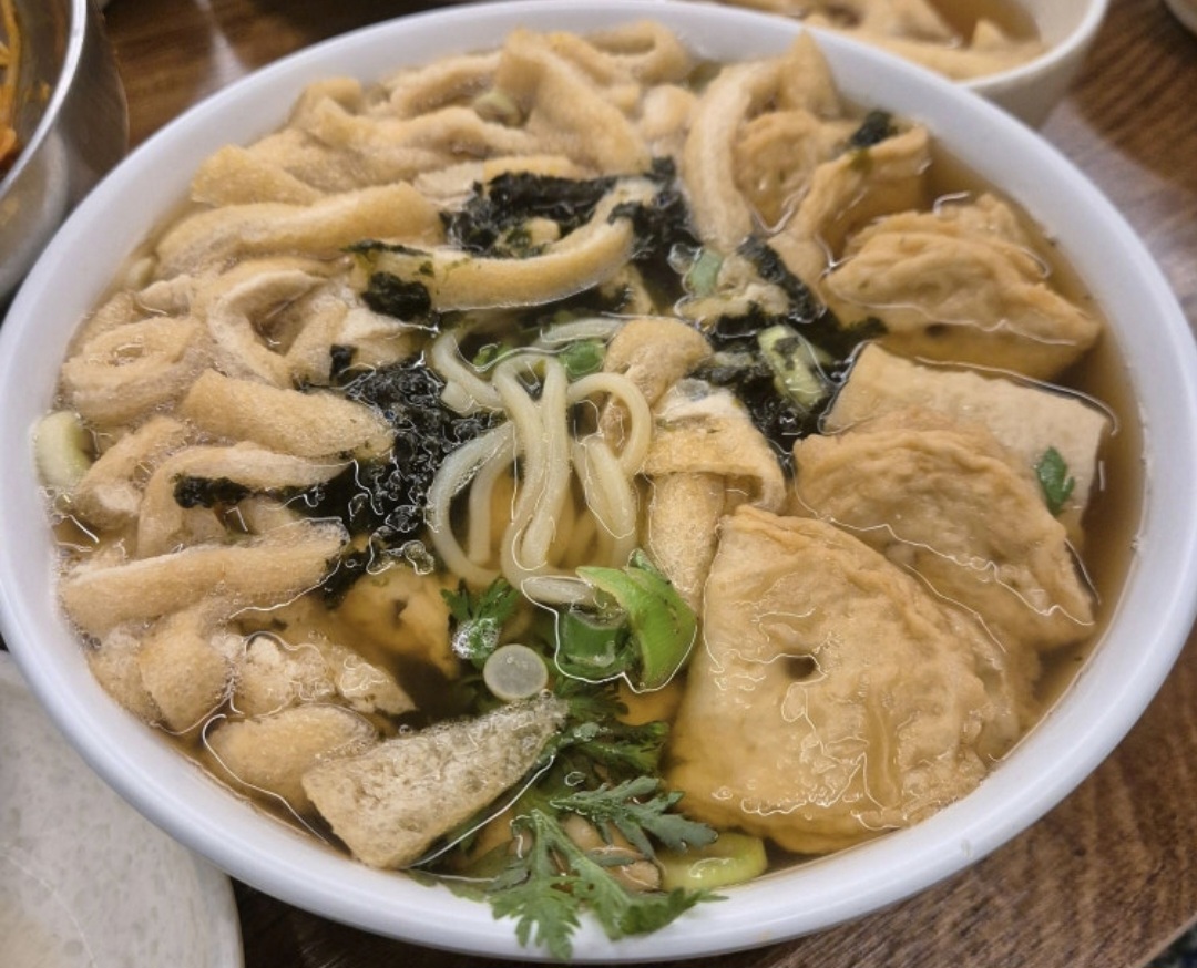 어묵과 유부가 듬뿍 들어가 있어 한 그릇으로도 든든해요.