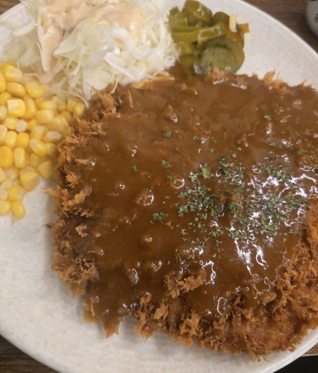 바삭하게 튀겨낸 돈까스에 달콤한 소스를 곁들인 옛날 스타일의 돈까스!