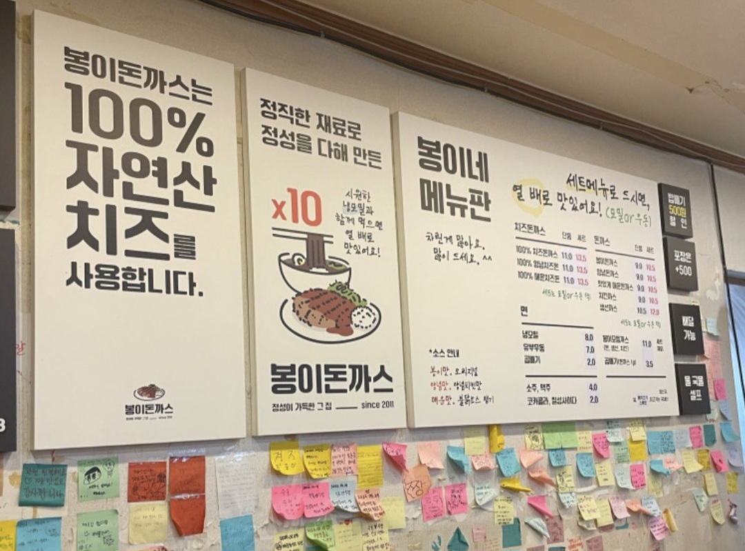 📍 봉이돈까스는 70~80년대의 빈티지한 느낌의 인테리어로 꾸며져 있어요. LP판과 손님들의 손글씨로 아기자기하게 장식된 공간은 마치 시간이 멈춘 듯한 느낌을 주는데요, 따뜻한 분위기에서 편안하게 식사를 즐길 수 있답니다. 🏠