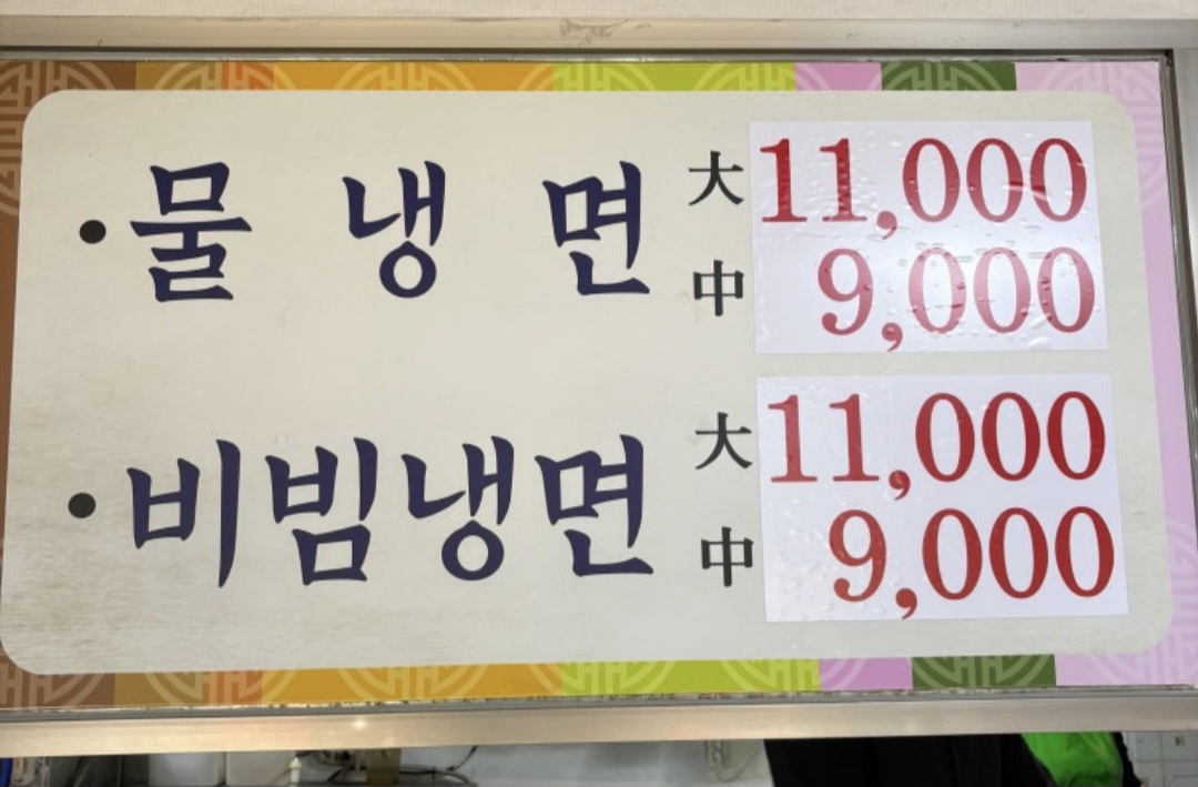 1. 물칡냉면 (중 9,000원 / 대 11,000원) 🥶