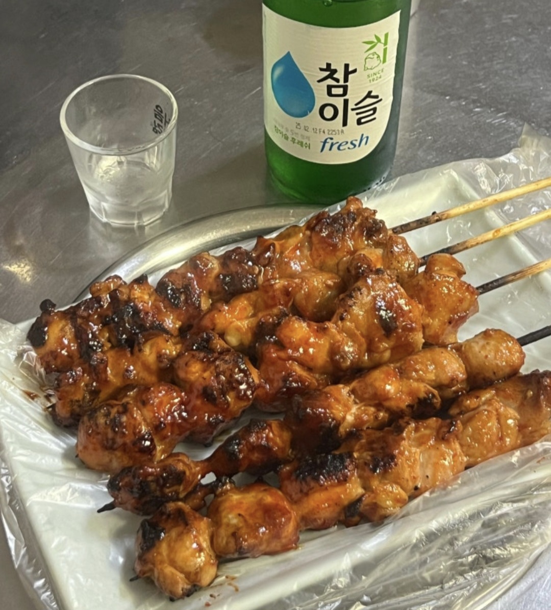 직화로 구워낸 닭꼬치는 불향이 제대로!