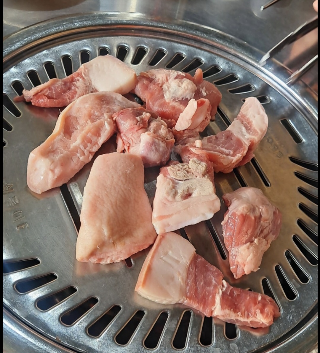 두툼하고 쫄깃한 생뒷고기! 연탄불에서 정성껏 구워내니 고소한 풍미가 입안 가득 퍼져요.