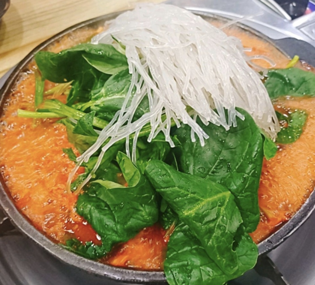푸짐하게 들어간 쫄깃한 곱창, 시금치, 당면, 채소가 어우러져