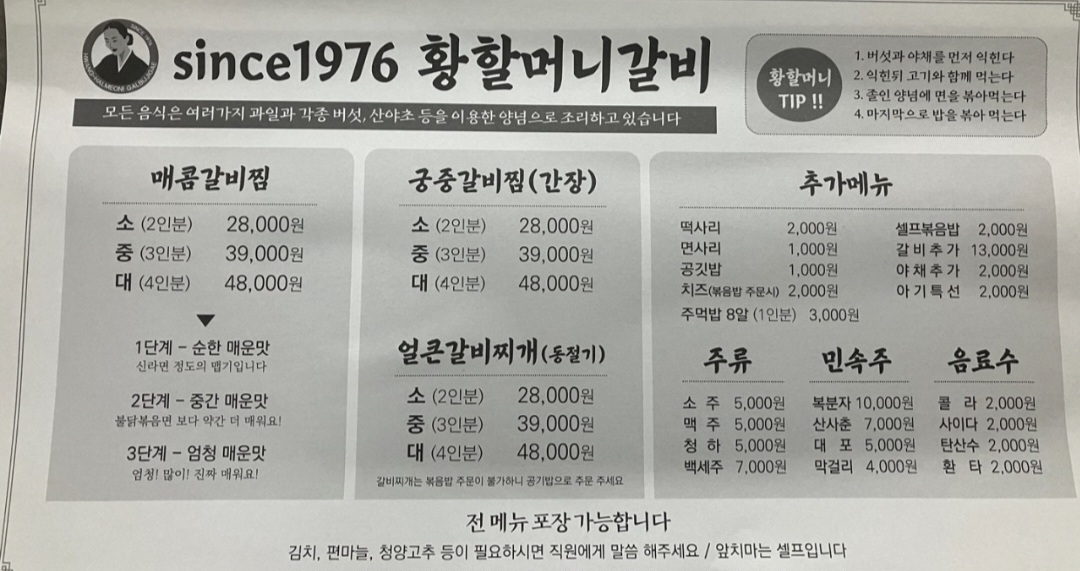 황할머니갈비찜은 그 이름만큼이나 정겨운 맛과 따뜻한 분위기를 선사하는 곳이에요.