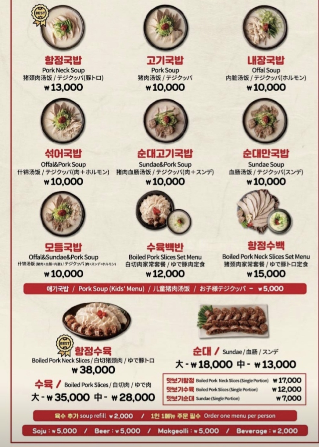 대표 메뉴: 항정국밥, 고기국밥, 순대국밥