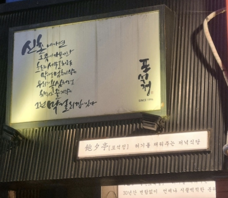 신촌은 젊음과 활기가 넘치는 거리로, 다양한 맛집과 술집이 밀집한 곳입니다. 그중에서도 포석정은 가성비 좋은 막걸리와 푸짐한 기본 안주로 유명한 곳인데요. 특히, 신촌에서 막걸리를 즐기려는 분들에게 강력 추천하는 맛집입니다. 신촌 포석정의 분위기, 대표 메뉴, 방문 팁까지 자세히 소개해드릴게요!