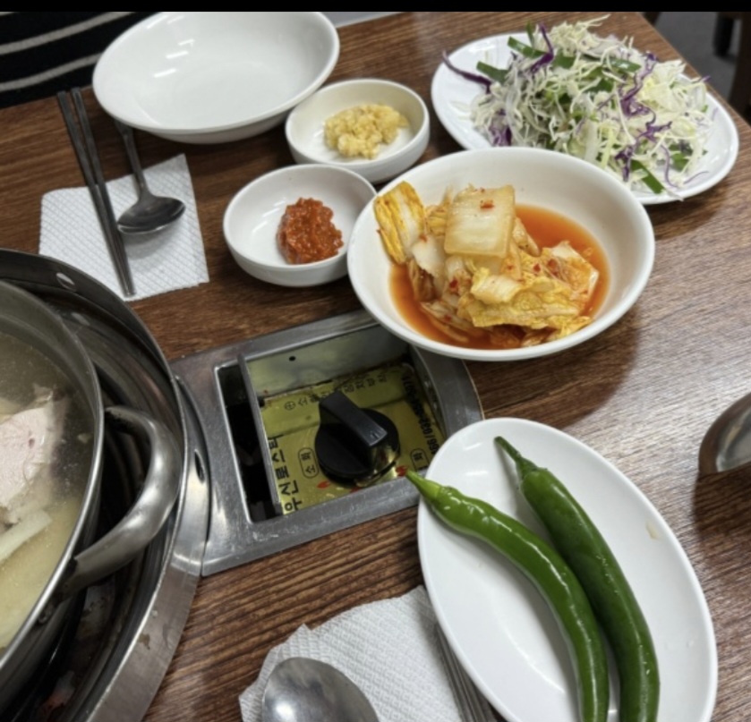 기본으로 제공되는 시원한 물김치와 새콤한 양념장은 닭한마리와 환상의 조합을 이루며, 원하는 만큼 추가해서 먹을 수 있습니다.