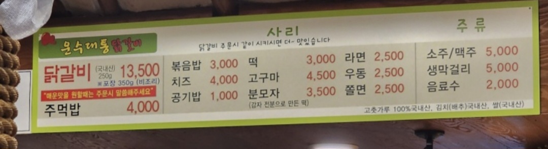 🍽️ 운수대통 닭갈비 추천 메뉴