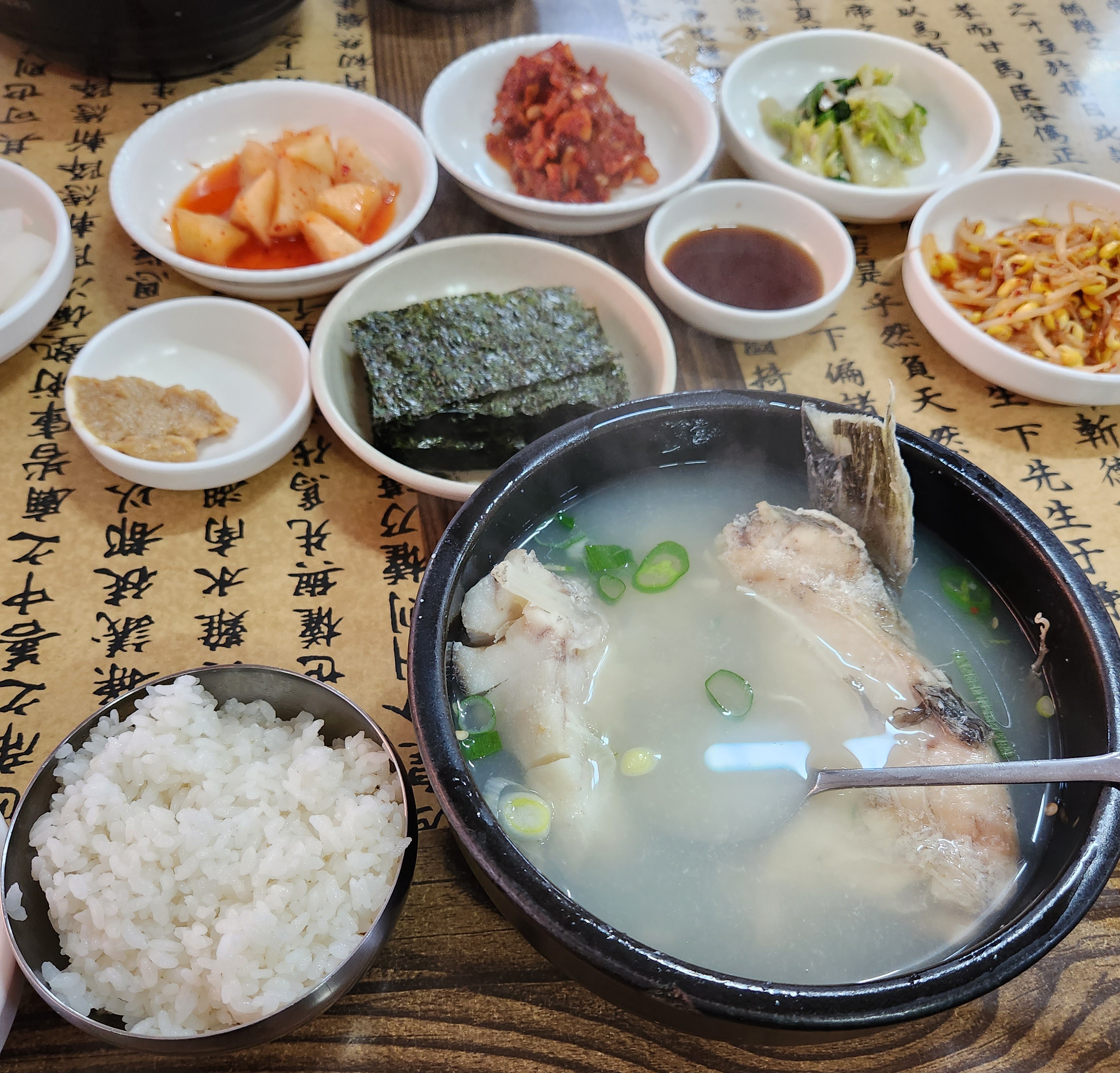 ✅️대구탕을 주문하면 큼직한 대구 살과 뽀얀 국물이 가득한 뚝배기가 나오고, 곁들여 먹을 수 있는 다양한 반찬들이 함께 제공됩니다. 특히, 멍게젓과 김에 싸 먹는 밥은 별미로 손꼽히며, 이곳만의 특별한 조합 덕분에 한 번 방문한 사람들은 다시 찾게 됩니다.
